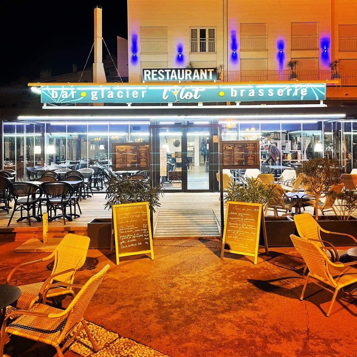 Si vous souhaitez manger français et êtes en quête d’un établissement où passer la soirée, vous êtes les bienvenus chez nous. Découvrez le « L'ilôt » savourez les délicieux plats de nos chefs ! Profitez du soleil sur notre terrasse exclusive. Quelle que soit la météo, nos salles climatisées vous garantissent toujours des températures idéales.